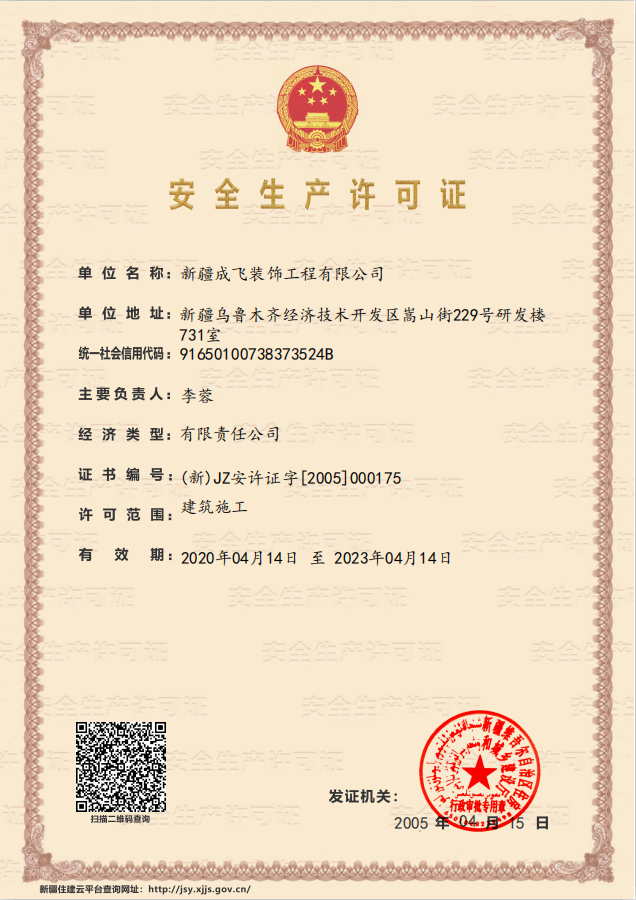新疆成飛建設工程有限公司是一家以專注于裝飾工程領域,堅持穩健經營、持續創新、開放合作的原則,在星級賓館、高檔寫字樓、大型商場、高級餐館、娛樂設施、車站、銀行等大型室內外建筑工程(包括各類玻璃幕墻、石材幕墻、鋁板幕墻、鋼結構室內裝飾等工程)裝飾裝修...查看更多